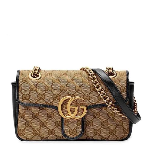 GUCCI/古驰 女士GG Marmont 超迷你 supermini 经典双G金属logo米色拼黑色牛皮斜挎包单肩包链条包女包574969-0OLOX-9689
