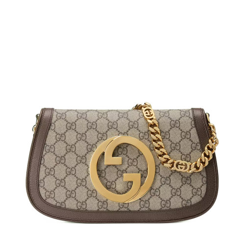 GUCCI/古驰 22新款Blondie系列 女士小号棕色老花帆布配皮圆形徽标金扣金链配可拆卸肩带单肩斜跨链条包?699268K9GSG8358