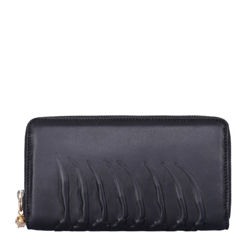 Alexander McQueen/亚历山大麦昆 女包 女士黑色牛皮时尚拉链长款钱包 375282DZS0M1000