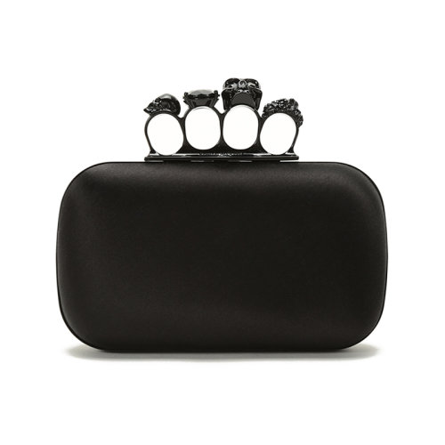 Alexander McQueen/亚历山大麦昆 女士黑色皮革银骷髅头按扣翻盖钱包手拿包女包 554197-1DD01-1000