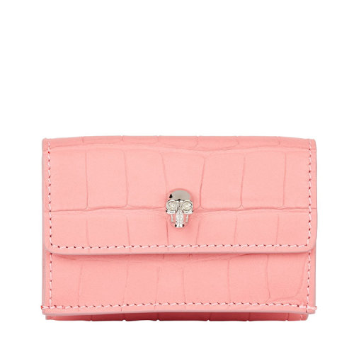 Alexander McQueen/亚历山大麦昆 女包女士粉色皮革鳄鱼纹骷髅头标志时尚百搭钱夹钱包 $5419111BK0I5618