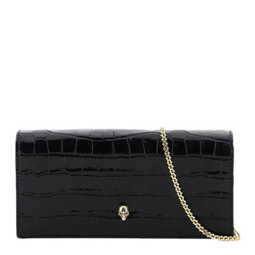 Alexander McQueen/亚历山大麦昆 女士黑色小牛皮鳄鱼纹链条包单肩包链条包女包632031-1JM0G多色可选