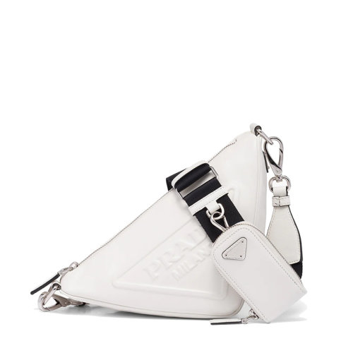 PRADA/普拉达 女士白色皮革拉链开合附可拆卸可调徽标印花织物肩带皮革拉链小袋三角形手袋斜跨单肩包1BH190_2BYA_F0009_V_BRO