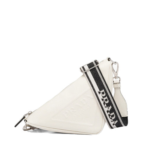PRADA/普拉达 22年新款 男士白色皮革编织黑色白色肩带拉链可调徽标印花三角形斜挎单肩包2VH5_2FAD_F0009_V_OOO