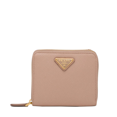 PRADA/普拉达 22春夏新款 女士小号皮粉色皮革三角金标拉链钱包1ML036_QHH_F0236