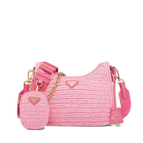 PRADA/普拉达 22新款Re-Edition 2005系列 女士花瓣粉色酒椰纤维金属三角形徽标可拆卸拉链式小袋单肩手提包1BH204_2A2T_F0442_V_V9L