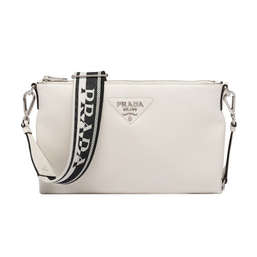 PRADA/普拉达 22新款 女士小号白色皮革配徽标印花刺绣拆卸肩带金属配饰拉链开合单肩斜挎包1BH050_2DKV_F0009_V_3OM