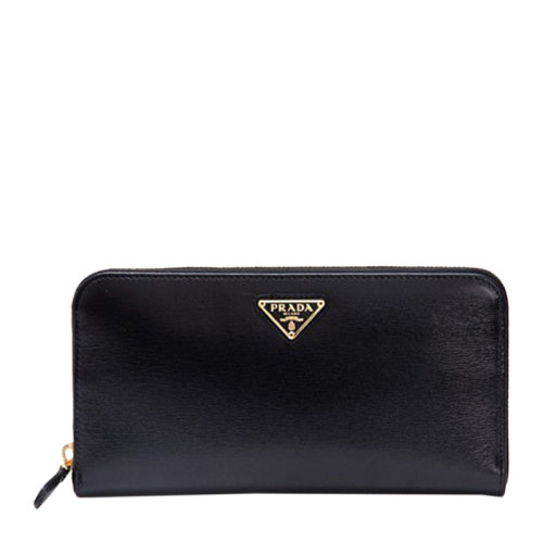 PRADA/普拉达 女士黑色牛皮拉链Logo长款钱包手拿包零钱包女包 1ML506-309-F0D9A