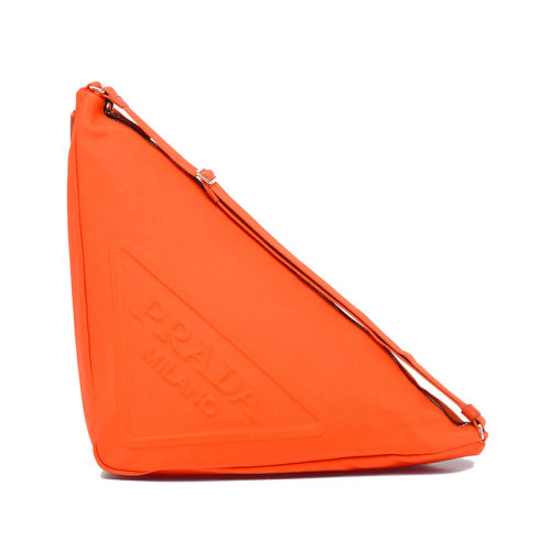PRADA/普拉达 22年新款 Triangle系列 男士橘色织物徽标压印银扣拉链开合单肩斜挎手提三角包2VY007_010_F0049_V_OLO
