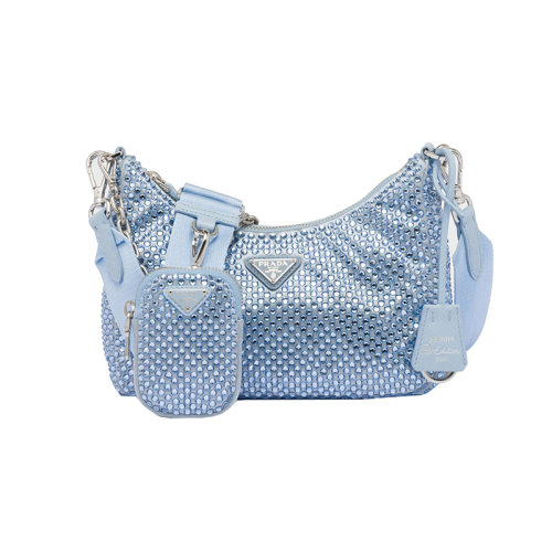 PRADA/普拉达 22新款 Re-Edition 2005系列 女士mini蓝色水晶缎面调节的编织肩带链式手柄拉链小袋可拆卸钥匙圈1BH204_2AWL_F0076_V_V9L