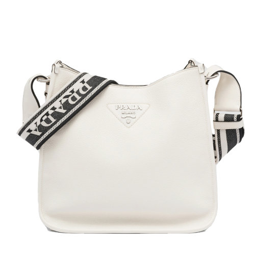PRADA/普拉达 22年新款hobo系列 女士白色皮革银扣徽标压印配织物皮革肩带磁吸开合单肩斜挎hobo流浪包1BC073_2DKV_F0009_V_3OO