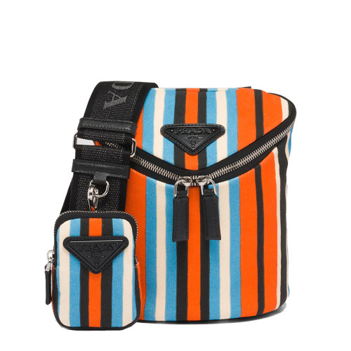 PRADA/普拉达 22年新款 男士橙色/蓝色/白色横条纹织物配可拆卸小袋拉链开合斜跨单肩包2VH7_2D0Z_F0049_V_OOO