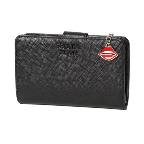 PRADA/普拉达 22春夏新款 女士黑色皮革金标按扣钱包1ML225_QWA_F0002