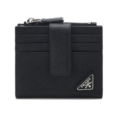 PRADA/普拉达 22春夏新款 女士小号黑色皮革三角金标翻盖钱包1MV204_QHH_F0002