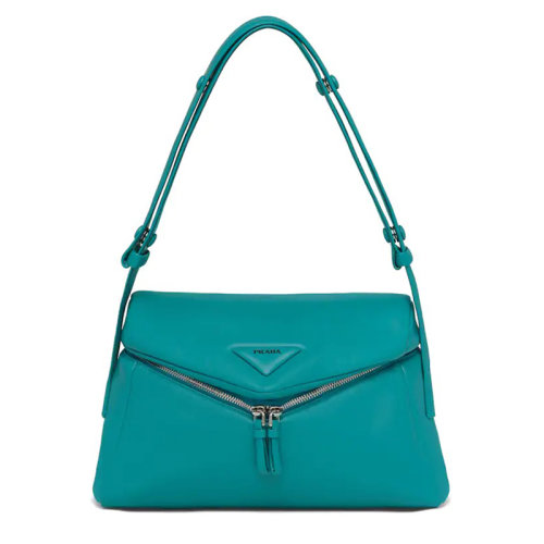 PRADA/普拉达 Signaux系列 蓝鸭色光滑纳帕皮革 简约绗缝填充翻盖单肩包1BC165_2DX8_F0363_V_OOO