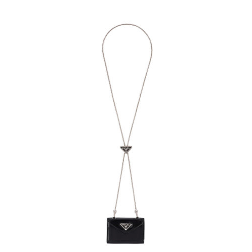 PRADA/普拉达 22年新款 女士黑色皮革翻盖三角标链式零钱卡包1MR029_ZO6_F0002
