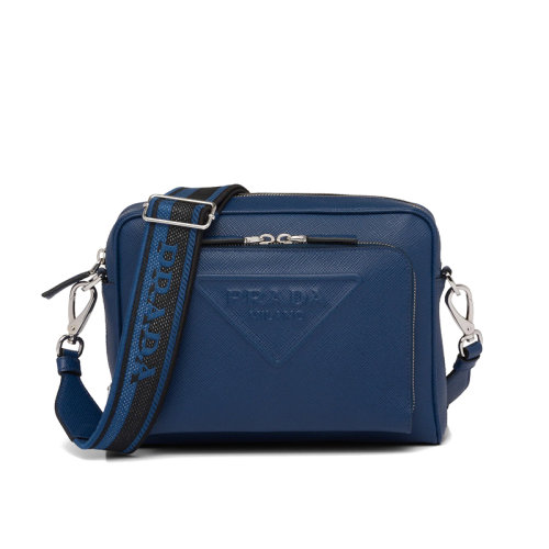 PRADA/普拉达 22年新款 男士深紫蓝色皮革压花刺绣织带徽标拉链多层单肩包2VH2_2FAD_F00_V_OOO