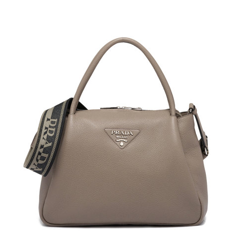 PRADA/普拉达 22年新款 女士大号黏土灰色皮革饰有三角徽标配织物肩带拉链开合单肩斜跨手提包1BC0_2DKV_F0572_V_3OO