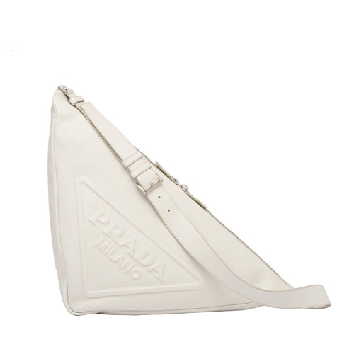 PRADA/普拉达 22年新款 男士滑石白色皮革压纹银扣三角包单肩包2VY007_2BBE_F0K74_V_DLO