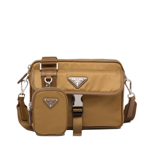 PRADA/普拉达 22新款 男士烟草色再生尼龙Saffiano皮革饰边涂珐琅金属三角形徽标装饰翻盖单肩斜挎包2VH133_2DMH_F0005_V_XMP
