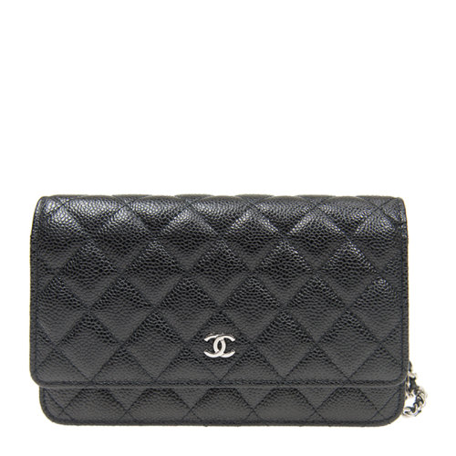 CHANEL/香奈儿 经典classique系列 黑色鱼子酱压纹小牛皮 金色双C卡片夹