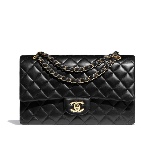 CHANEL/香奈儿 经典款CF 女士中号黑金小羊皮链条单肩包 A01112