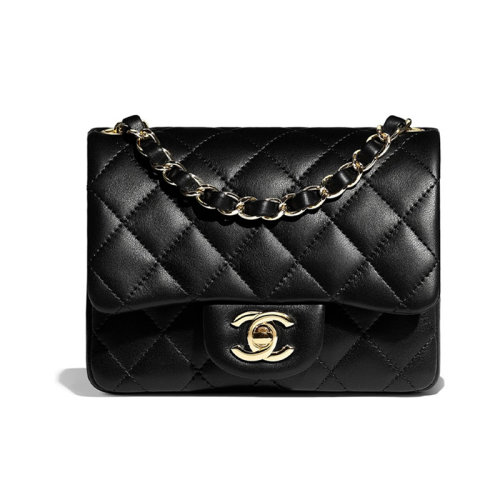 CHANEL/香奈儿 经典黑色滑面小牛皮金扣链条方胖子迷你单肩包A35200Y0405994305