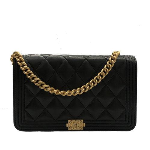 CHANEL/香奈儿 经典boy woc 黑色粒面压花小牛皮金扣链条单肩包