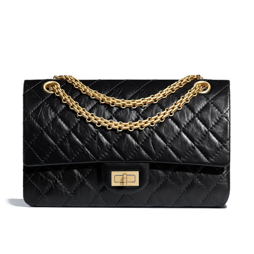 CHANEL/香奈儿 经典2.55系列 黑金 黑色鞣面小牛皮金扣小号24链条单肩包