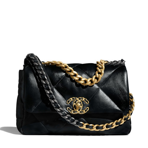 预定一个月发货 CHANEL/香奈儿 经典款CHANEL 19系列 黑色小羊皮 金银拼色链扣小号斜挎单肩包