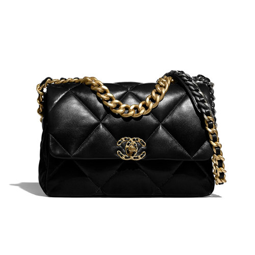 CHANEL/香奈儿 经典款19系列 女士大号黑色小羊皮菱格纹金色金属饰面单肩斜挎包AP445112574116