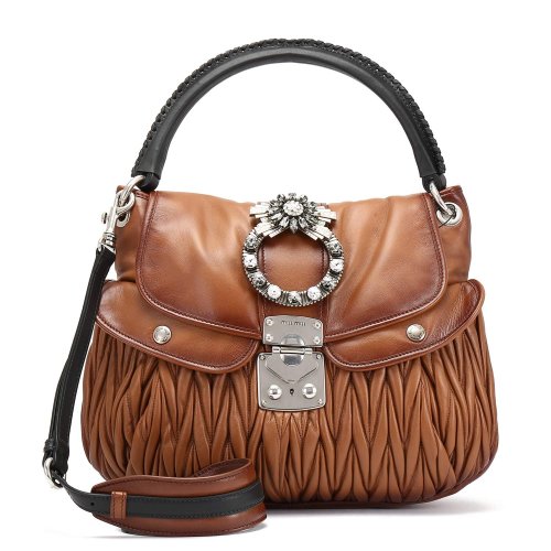 MiuMiu/缪缪 19秋冬 女士 手提包 Matelasse系列 水桶包 logo 褶皱 3601