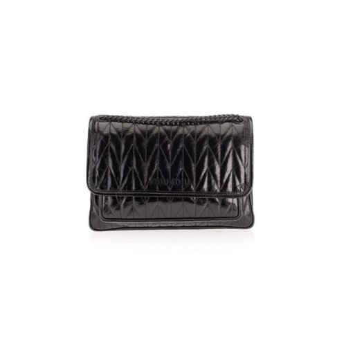 Miu Miu/缪缪 18年秋冬 链条 褶皱 女包 女性 黑色 斜挎包 5BD084N882 NERO