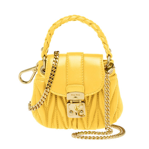 MiuMiu/缪缪 黄色 女士Matelassé软羊革迷你手拿包 5TT120_N88_F0377