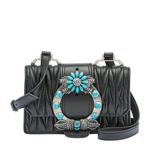 Miu Miu/缪缪 18年秋冬 链条 褶皱 女包 女性 黑色 斜挎包 5BD084N882 NERO