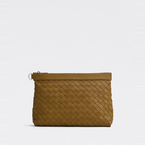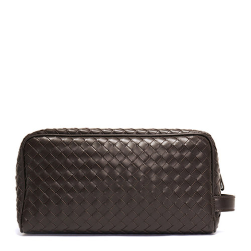 Bottega Veneta 宝缇嘉 简约拉链棕色牛皮编织纹理男士手拿包