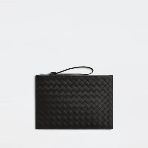 Bottega Veneta/葆蝶家 男士黑色羊皮手工编织长款对折钱夹钱包手拿包 316005-V4651-1000
