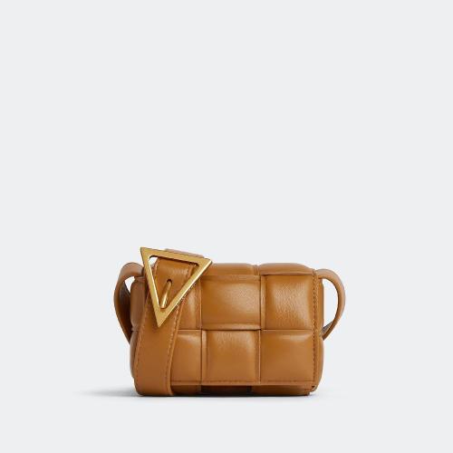 Bottega Veneta/葆蝶家 22春夏新款LOOP系列 女士迷你杏仁色Intrecciato编织羊皮革单肩斜挎包680254V1G112700