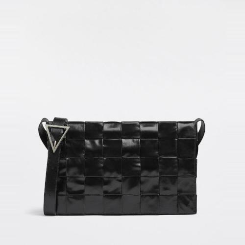 Bottega Veneta/葆蝶家 CHAIN CASSETTE系列 黑色小羊皮编织链条单肩斜挎包631421VBWZ08425