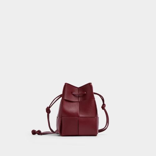 Bottega Veneta/葆蝶家 22新款 女士迷你旭日红色羔羊皮Intrecciato图案拉链开合单肩斜挎相机包680254V1G116583