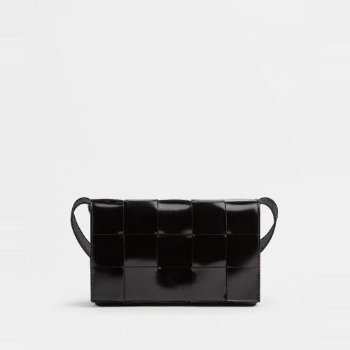 Bottega Veneta/葆蝶家 BV 女士黑色编织牛皮单肩包斜挎包女包 354756-V0016-8175