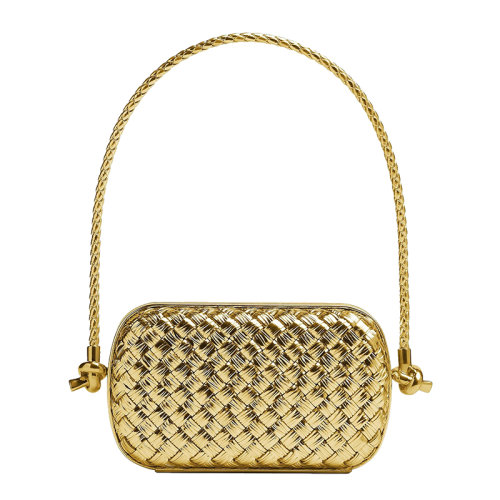 Bottega Veneta/葆蝶家 22新款 Minaudière系列 女士金色小牛皮带褶皱Intrccio图案磁扣框架开合单肩包717623V2OG18922