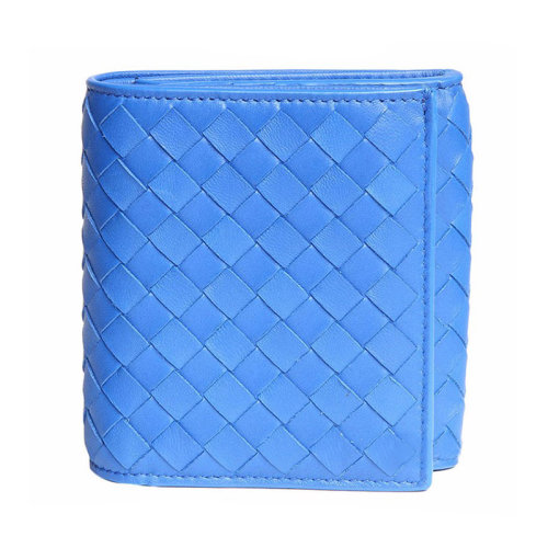 Bottega Veneta/葆蝶家 宝缇嘉女包 女士蓝色羊皮时尚短款折叠编织钱包 156822V001N4304