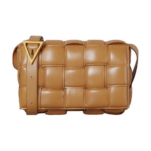 Bottega Veneta/葆蝶家 22新款 女士小号驼色羔羊皮编织图案金色饰面拉链开合单肩相机包709417VCQC22593