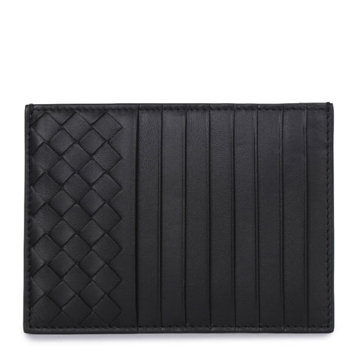 Bottega Veneta/葆蝶家 男女同款中性黑色羊皮编织款钱包卡夹卡包 162156-V001N-1000