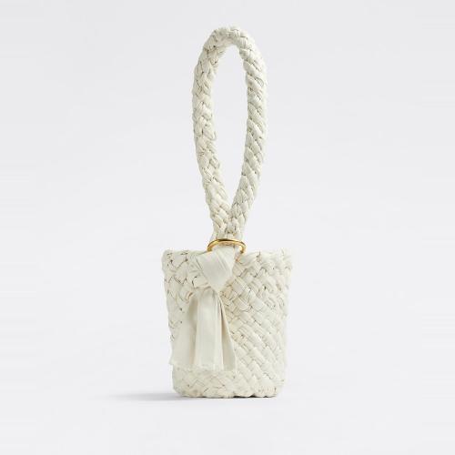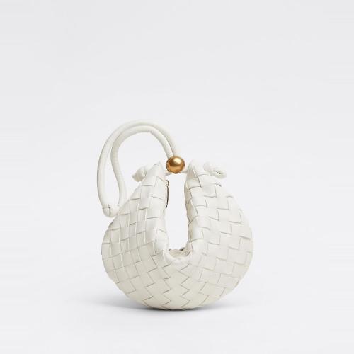 Bottega Veneta/葆蝶家 22新款 女士白色小牛皮编织图案黄铜饰面磁性框架开合单肩斜挎包717622V2H419233