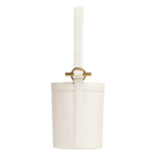 Bottega Veneta/葆蝶家 22新款 女士中号白色小牛皮饰Intreccio图案滑动肩带抽绳内袋单肩包716057V2EB09104
