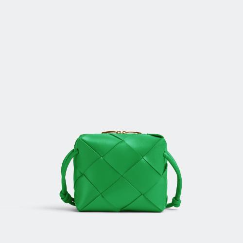 Bottega Veneta/葆蝶家 22春夏新款PADDED CASSETTE系列 女士鹦鹉绿色小羊皮双面编织单肩斜挎豆腐包591970VCQR13724