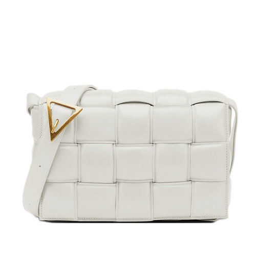 Bottega Veneta/葆蝶家 CASSETTE PADDED系列 粉笔白色小羊皮双面正交编织单肩豆腐包591970VCQR19143