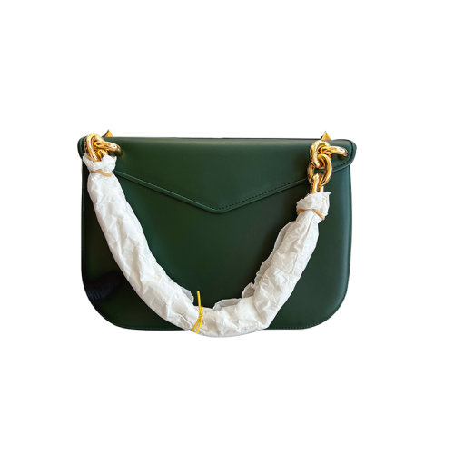 Bottega Veneta/葆蝶家 21新款CHAIN CASSETTE系列 女士雨林绿小羊皮编织金链单肩斜挎豆腐包631421VBWZ03035